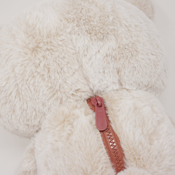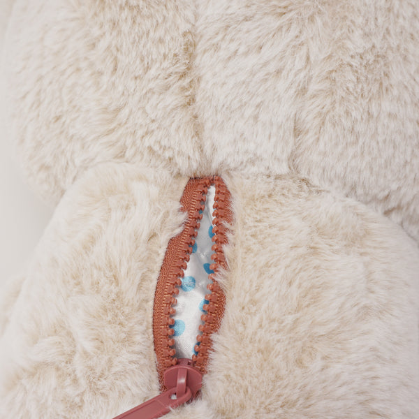 Super soft, fuzzy plush with special "Sherbet" naming! Complete with Rilakkuma's mysterious zipper and silky polka dot lining.